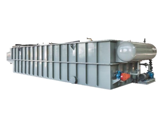 氣浮工藝的原理氣浮工藝是一項(xiàng)從水及廢水中分離固體顆粒高效快速的方法。它的工作原理是處理過的部分廢水循環(huán)流入溶氣罐,在加壓空氣狀態(tài)下,空氣過飽和溶解,然后在氣浮池的入口處與加入絮凝劑的原水混合,由于壓力減小,過飽和的空氣釋放出來(lái),形成了微小氣泡,迅速附著在懸浮物上,將它提升至氣浮池的表面。從而形成了很容易去除的污泥浮層,較重的固體物質(zhì)沉淀在池底,也被去除。